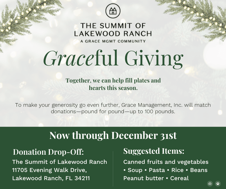 At The Summit of Lakewood Ranch, our Graceful Dining™ approach offers a homestyle culinary experience in a warm and inviting environment. Whether sharing an intimate meal with a best friend or celebrating a special occasion with all your loved ones, we are certain that living here will satisfy your appetite for connection with others and for the most delicious food.